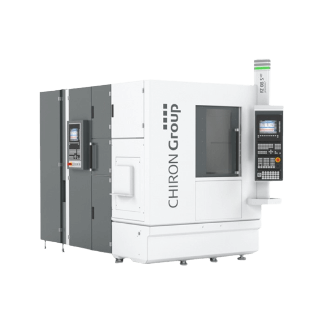 I centri di lavoro serie 08 offrono mandrino singolo o doppio per lavorazioni simultanee a 5 assi, con cambio pezzo in ciclo per grandi volumi e versioni fresatura-tornitura per lavorazioni multifunzionali da barra. La variante precision+ integra azionamenti lineari diretti, ideali per applicazioni di alta precisione nei settori medicale e tecnologico.